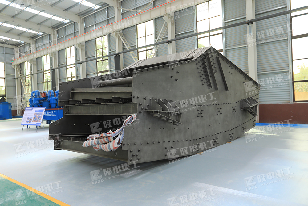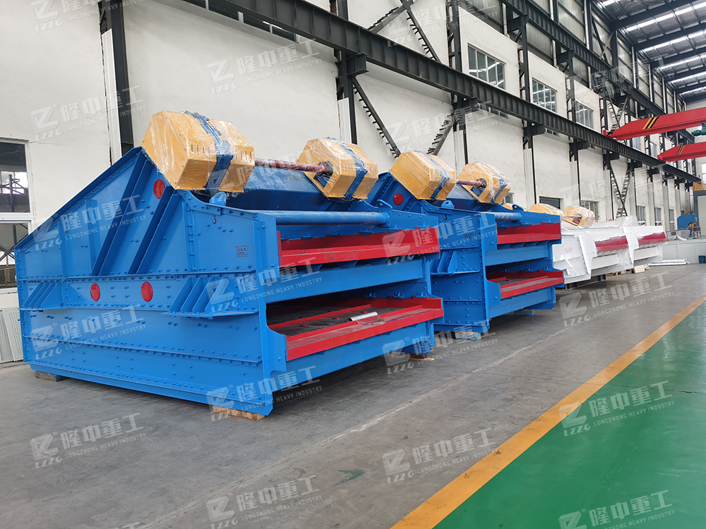 香蕉振動(dòng)篩在入料端有一斜坡面,先以34°開始,緊接著角度下降到大約為10°的出料端為止。篩面采用不同傾角的折線形式,從入料端到出料端物料層厚度是不變。各段篩面上物料量與流速比值穩(wěn)定、料層較高,呈現(xiàn)均勻狀態(tài)篩分效率顯著提高,比相同有效面積篩分機(jī)的處理量提高1-2倍,對(duì)于細(xì)粒含量高,特別是物料中料度占分級(jí)粒度尺寸小于1/2的物料含量較大時(shí),香蕉型振動(dòng)篩分機(jī)具有較高的篩分效率。